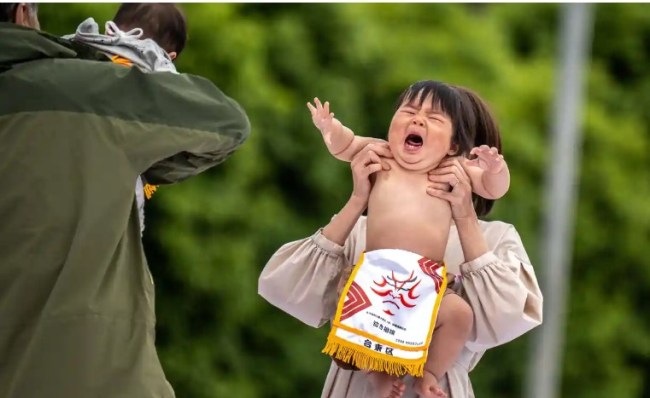 A Japánban hagyományos síró baba szumó fesztivált először rendezték meg a világjárvány óta